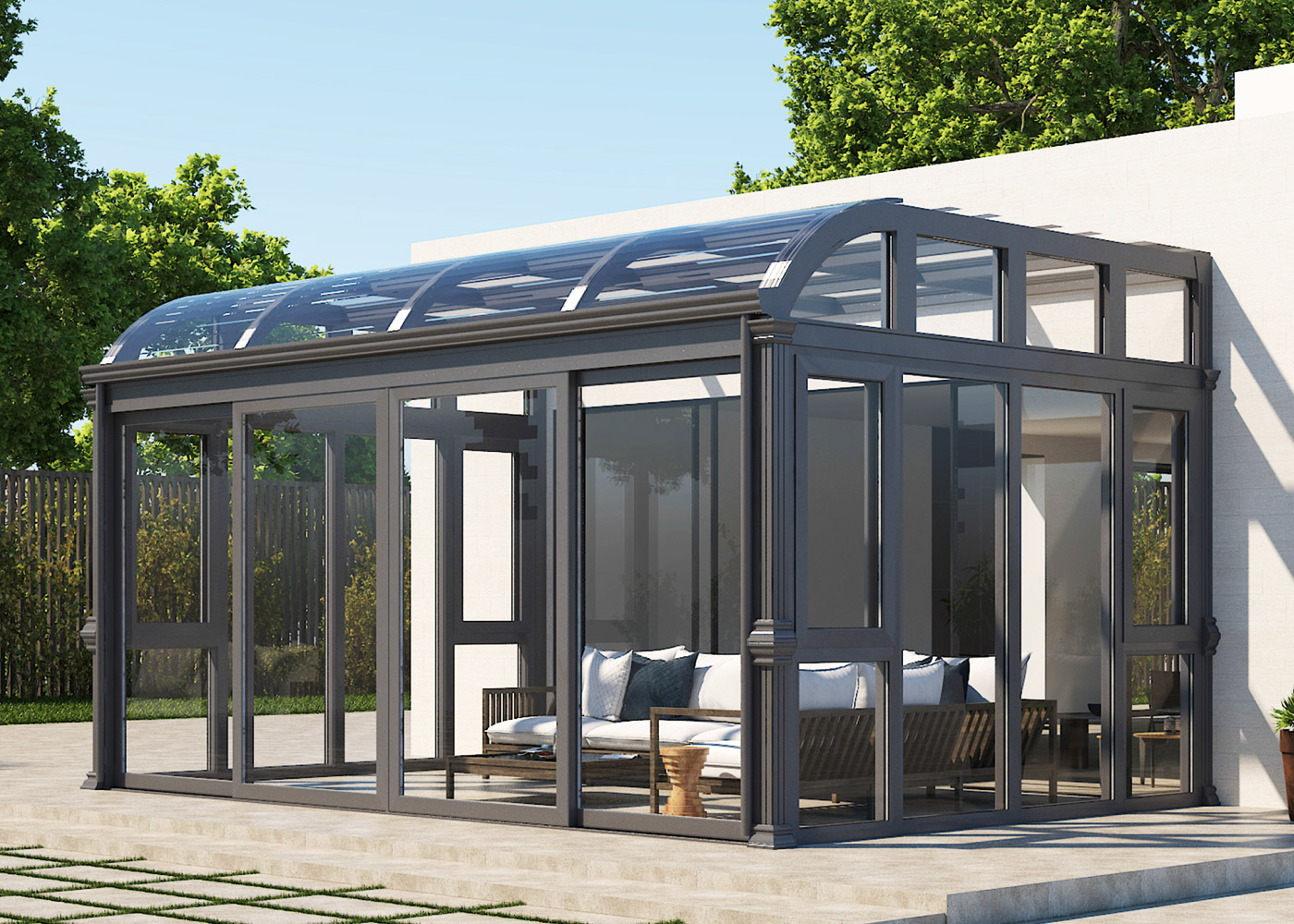 有序的排水设计:解决了国内现存阳光房的疑难问题,阳光房在排水设计上精巧,在其型材构件截面上设计专业排水涌道,保证少量渗入胶条的雨水和室内冷凝水有秩序地排出;